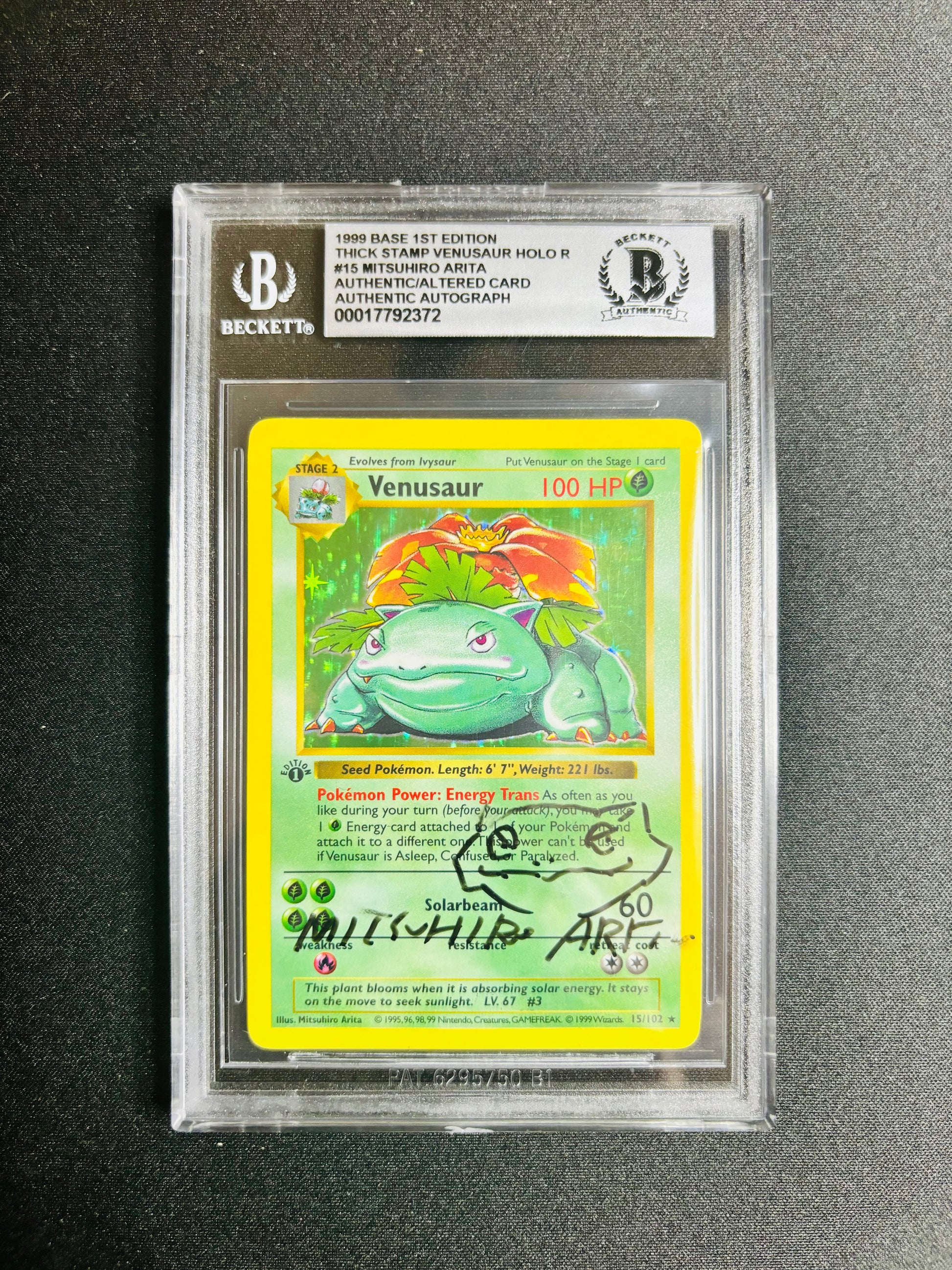 1999 BASE 1ST EDITION VENUSAUR HOLO R #15 MITSUHIRO ARITA AUTHENTIC/ALTERED CARD AUTHENTIC AUTOGRAPH BGS AA