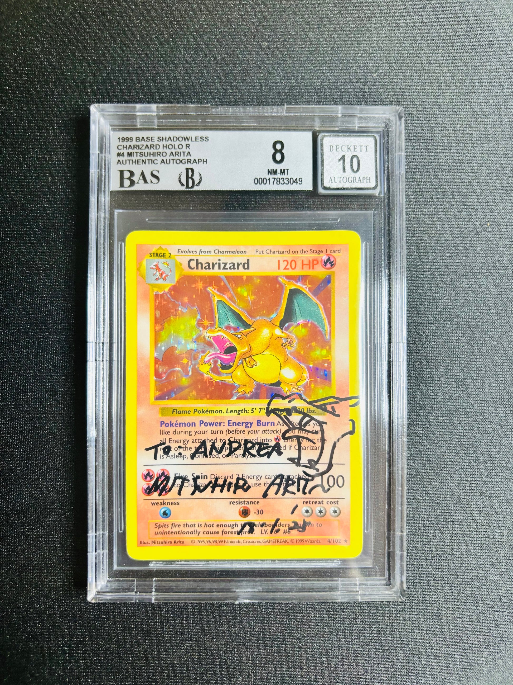 1999 BASE SHADOWLESS CHARIZARD HOLO R #4 MITSUHIRO ARITA AUTHENTIC AUTOGRAPH BGS 8/10