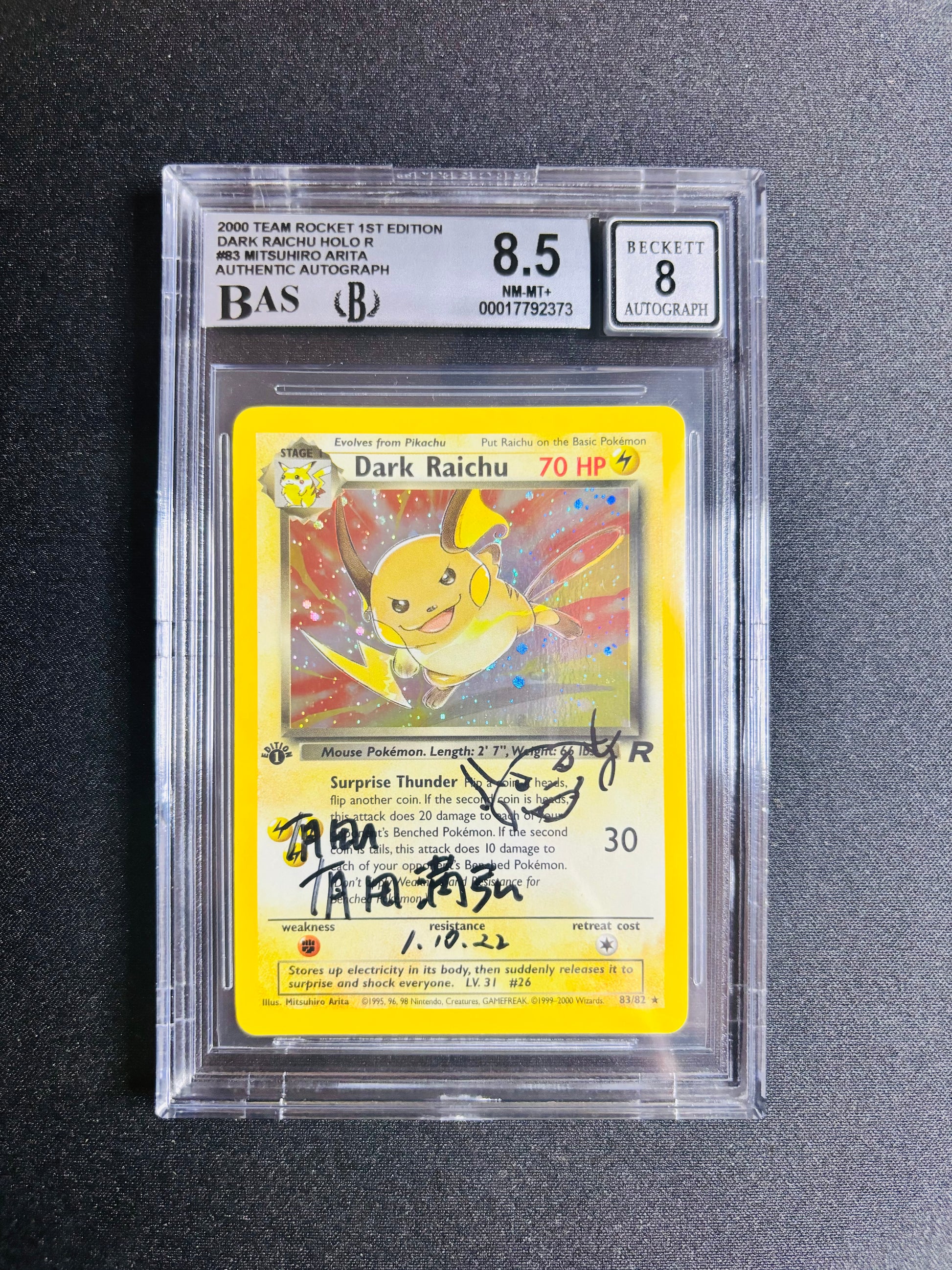 2000 TEAM ROCKET 1ST EDITION DARK RAICHU HOLO R #83 MITSUHIRO ARITA AUTHENTIC AUTOGRAPH BGS 8.5/8
