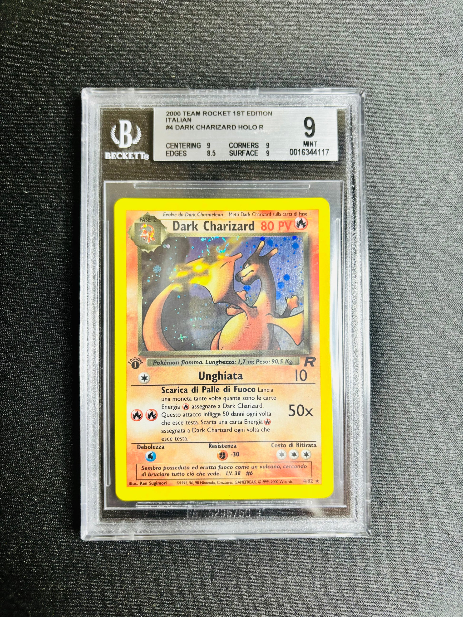 2000 TEAM ROCKET 1ST EDITION ITALIAN #4 DARK CHARIZARD HOLO R BGS 9