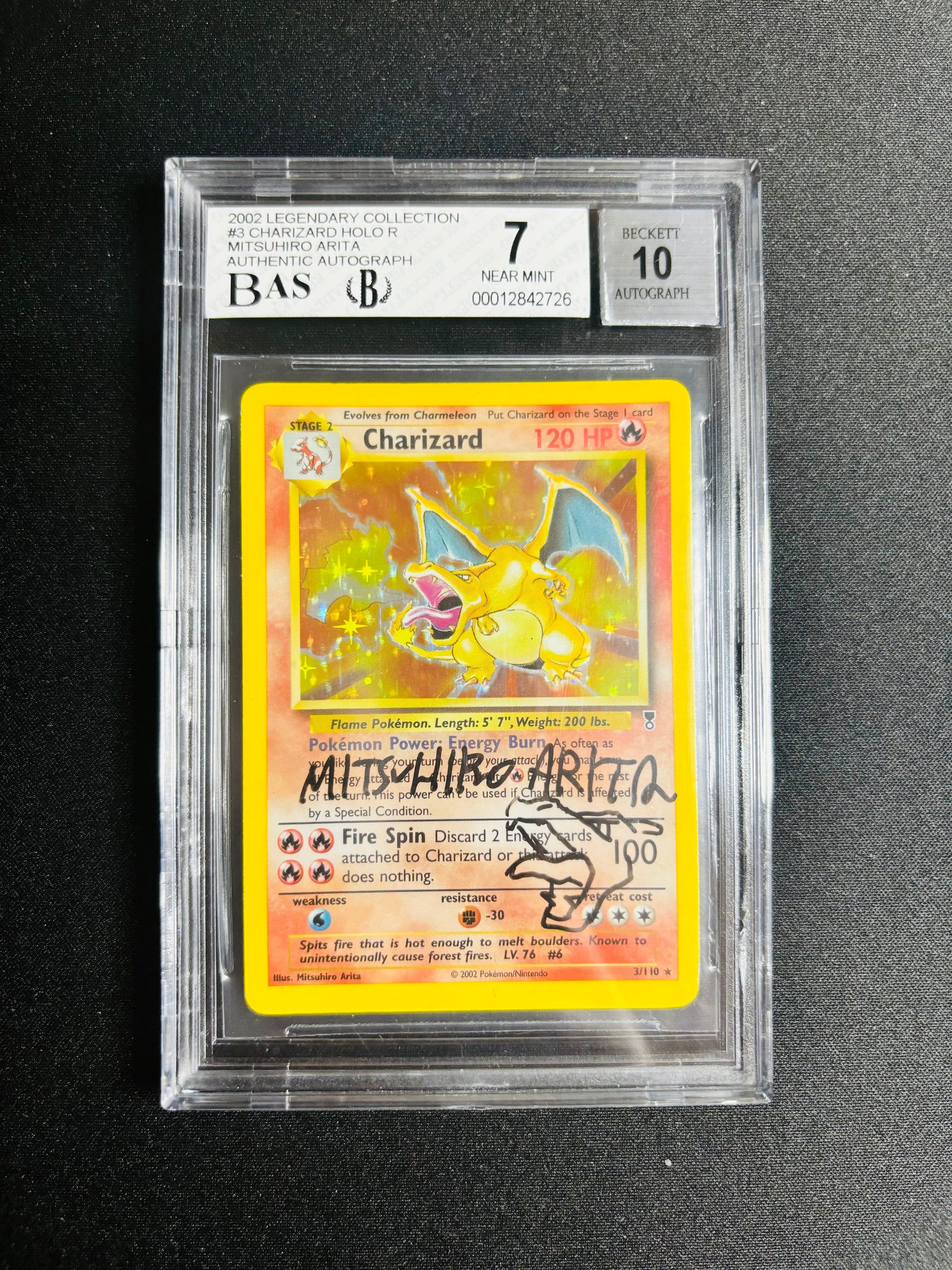 2002 LEGENDARY COLLECTION #3 CHARIZARD HOLO R MITSUHIRO ARITA AUTHENTIC AUTOGRAPH BGS 7/10