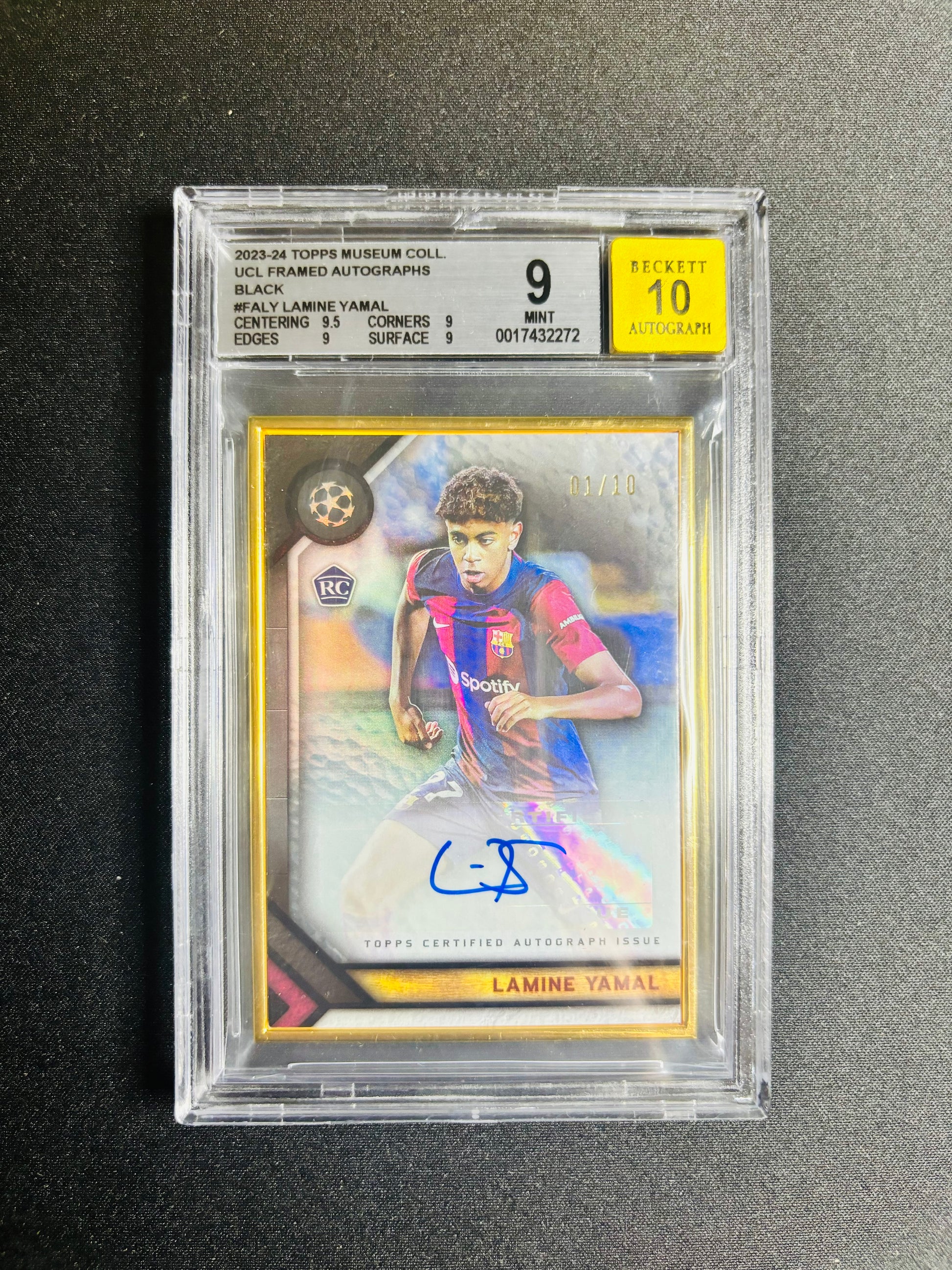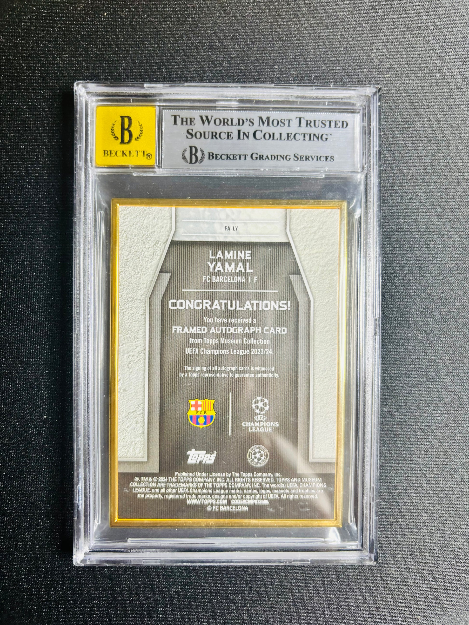 2023-24 TOPPS MUSEUM COLL. UCL FRAMED AUTOGRAPHS BLACK #FALY LAMINE YAMAL BGS 9/10