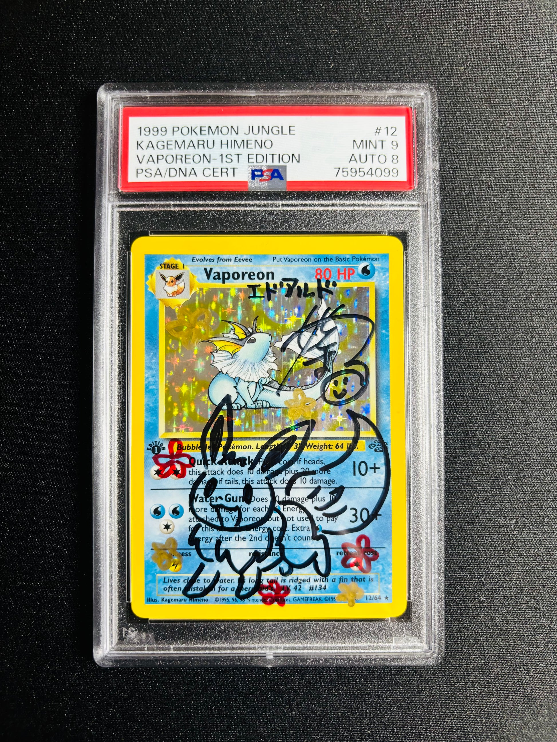 1999 POKEMON JUNGLE KAGEMARU HIMENO VAPOREON-1ST EDITION PSA 9/8