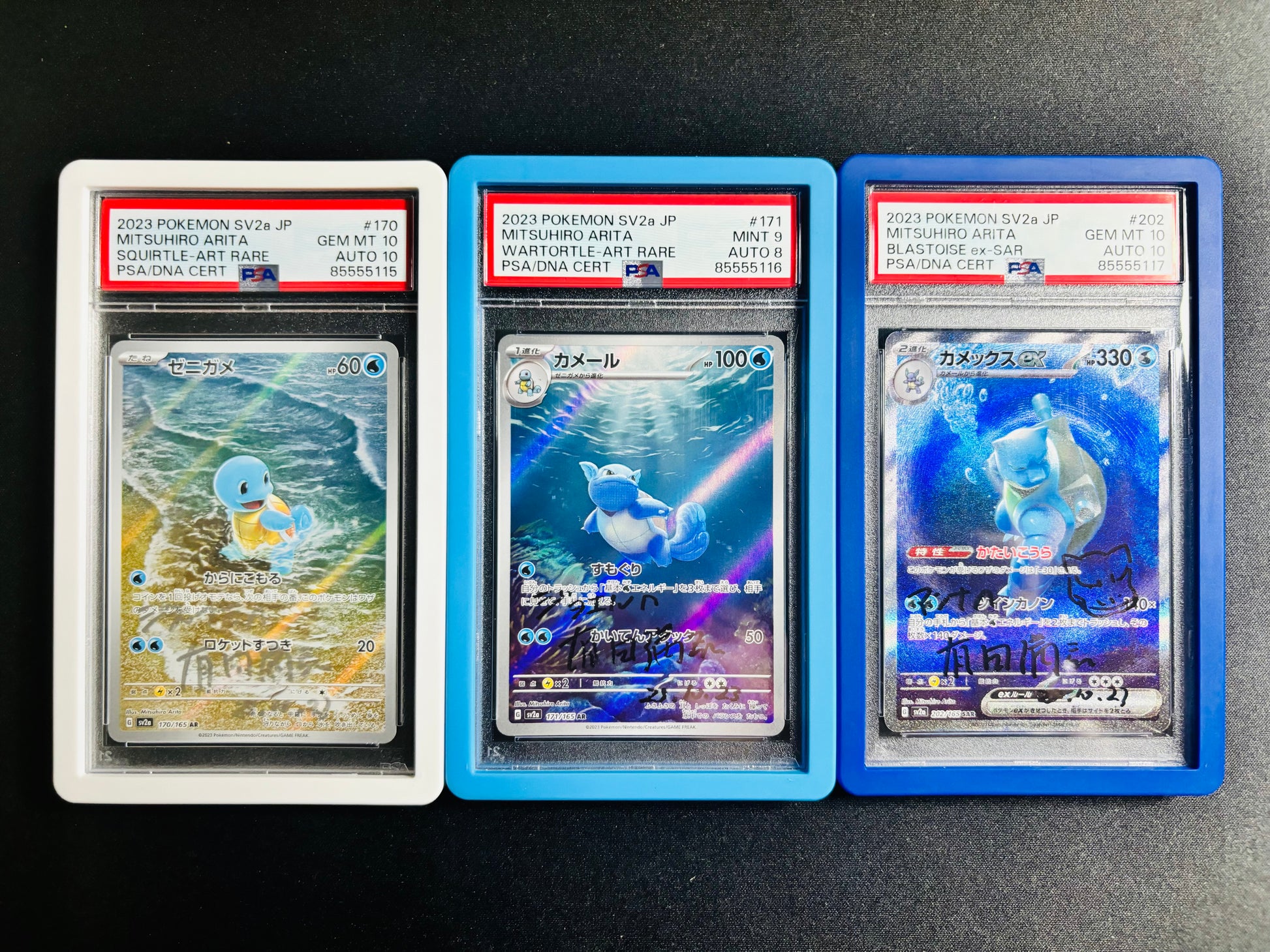 SQUIRTLE WARTORTLE BLASTOISE 151 JAPANESE SET PSA 10/10, 9/8, 10/10